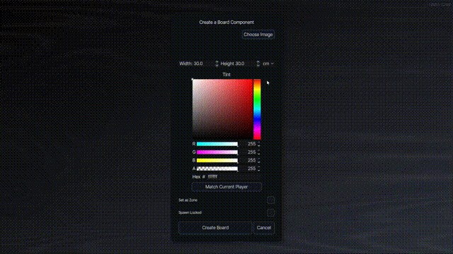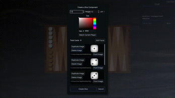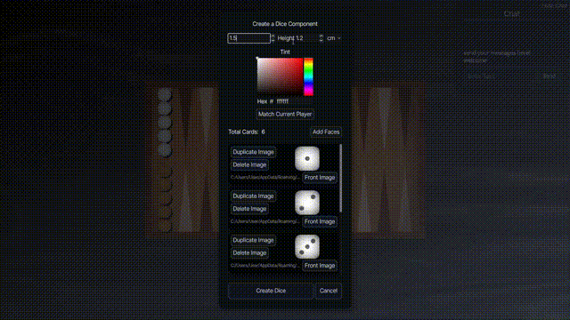 - Supports boards, pieces, cards, decks, dice, switchable (object with changing states) and texts